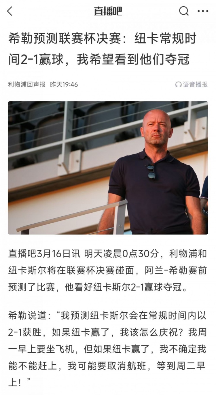 - 小嘴開(kāi)了光!希勒賽前精準(zhǔn)預(yù)測(cè):紐卡常規(guī)時(shí)間2-1贏利物浦